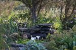 In this day to day I described, we are sent messages, sometimes as subtle as a dragon fly alighting on our shin for a moment. This summer my pond became some kind of biological otherworld. I never actually changed all the water and got it completely clean from the winter's ravages. I added some organic matter to help it along, as well as plants, hoping they would circulate the water. With our rain and heat this summer there was a lot of algae growth which I removed not-regularly-enough. But the plants thrived, and I used a small pump to keep the water moving. Birds and frogs took part with splashes and plunges.