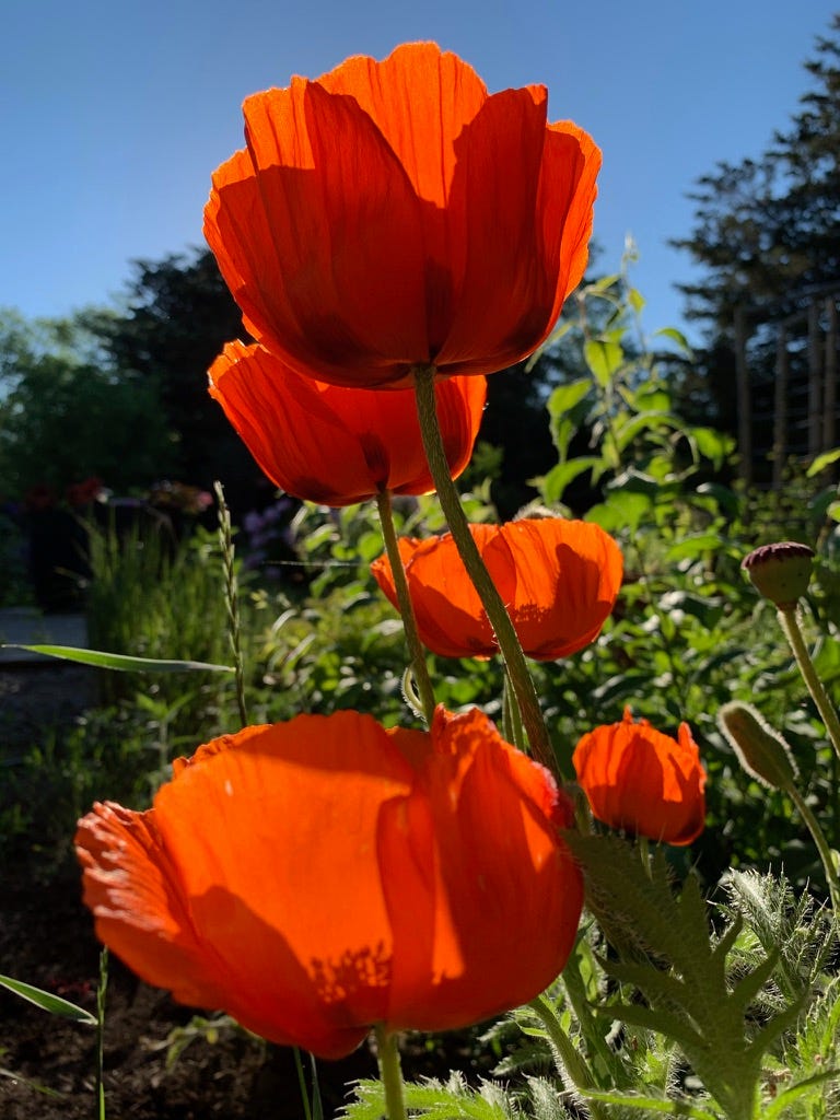 perfume in the air, peonies, poppies and lilacs, pollen bursting from buds and blossoms, rich
